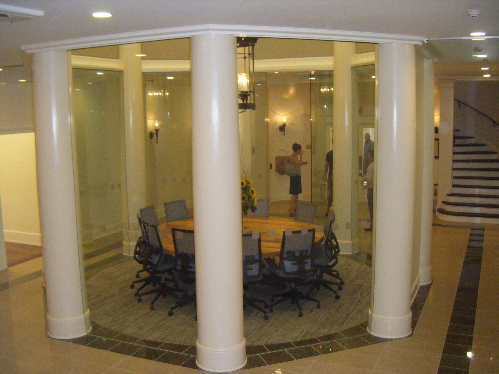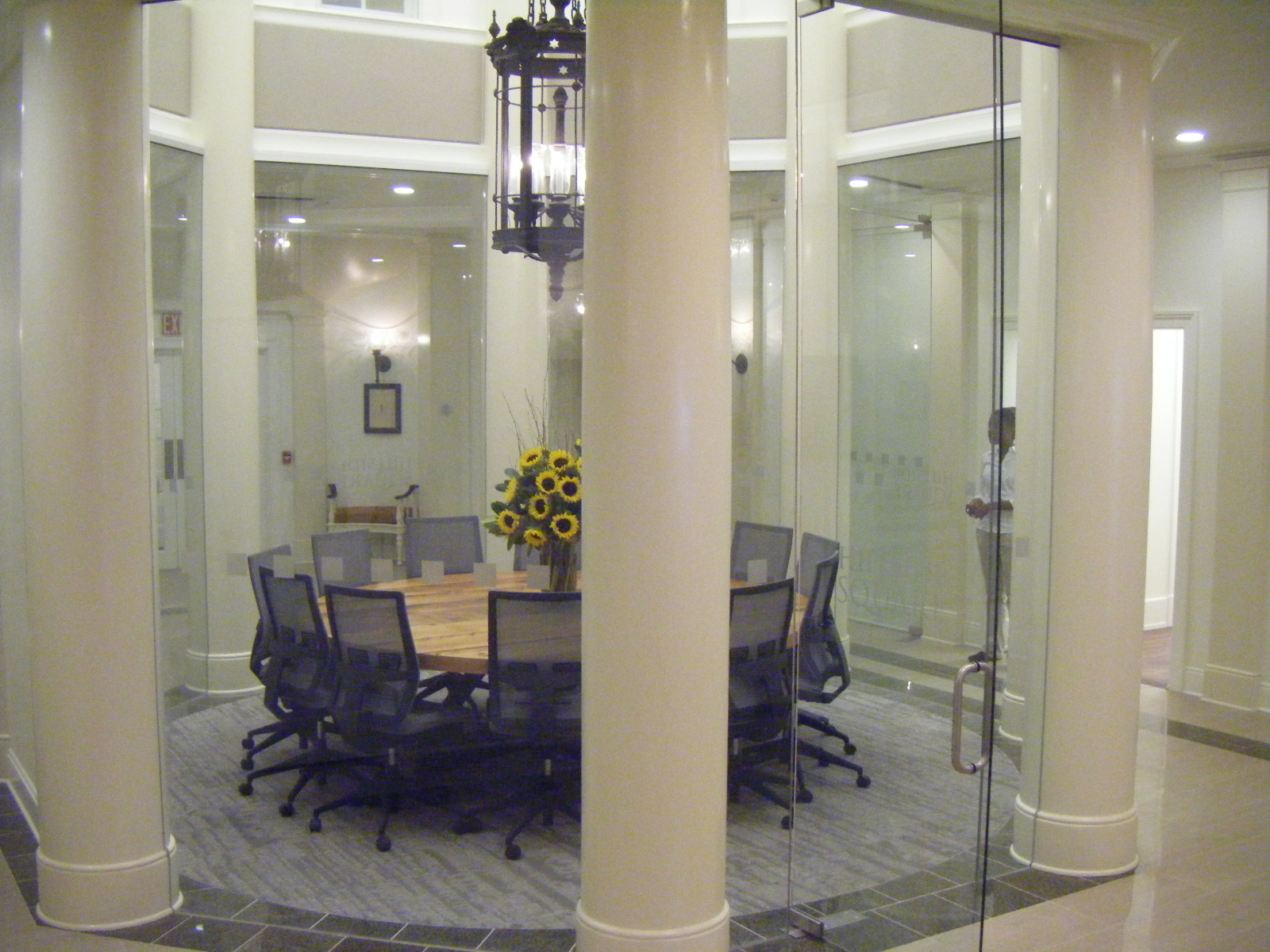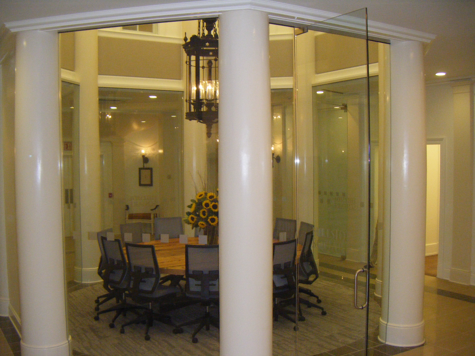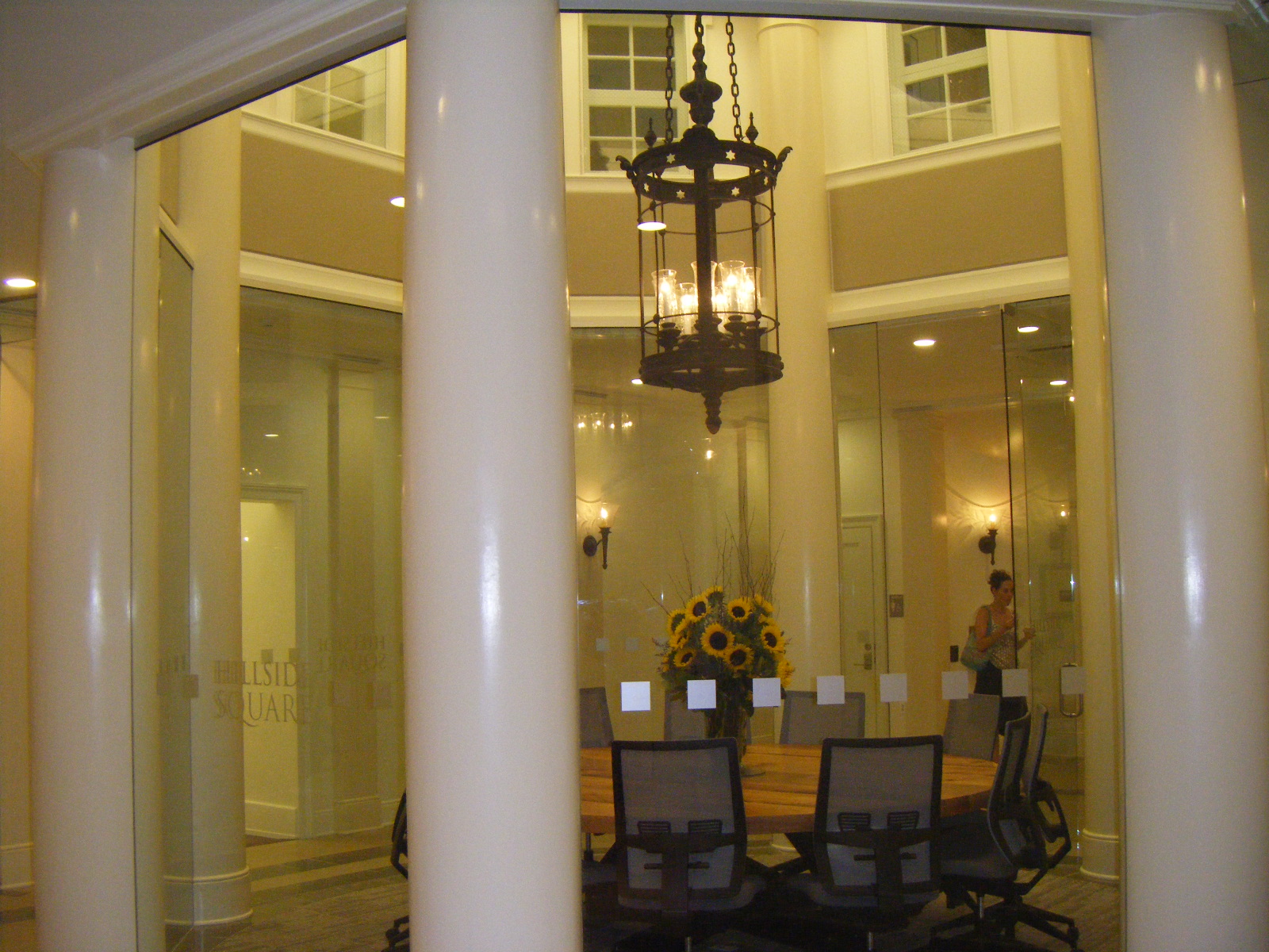 About five years ago in 2012 GlassCrafters was participating in an Architectural glass project - conversion from church to business offices. The former Christian Science Church has been renovated for office use and now called Hillside Square. Located in downtown Montclair NJ the Hillside Square known as a most prestigious "green" office complex. 23,000-square-foot structure was renovated and transferred into a dozen elegant office suites while preserve the original architectural and design elements of the 1926 church, such as original marble column, wrought iron pendant lamp, and 20-foot walnut arch that can be seen at the end of the hall.