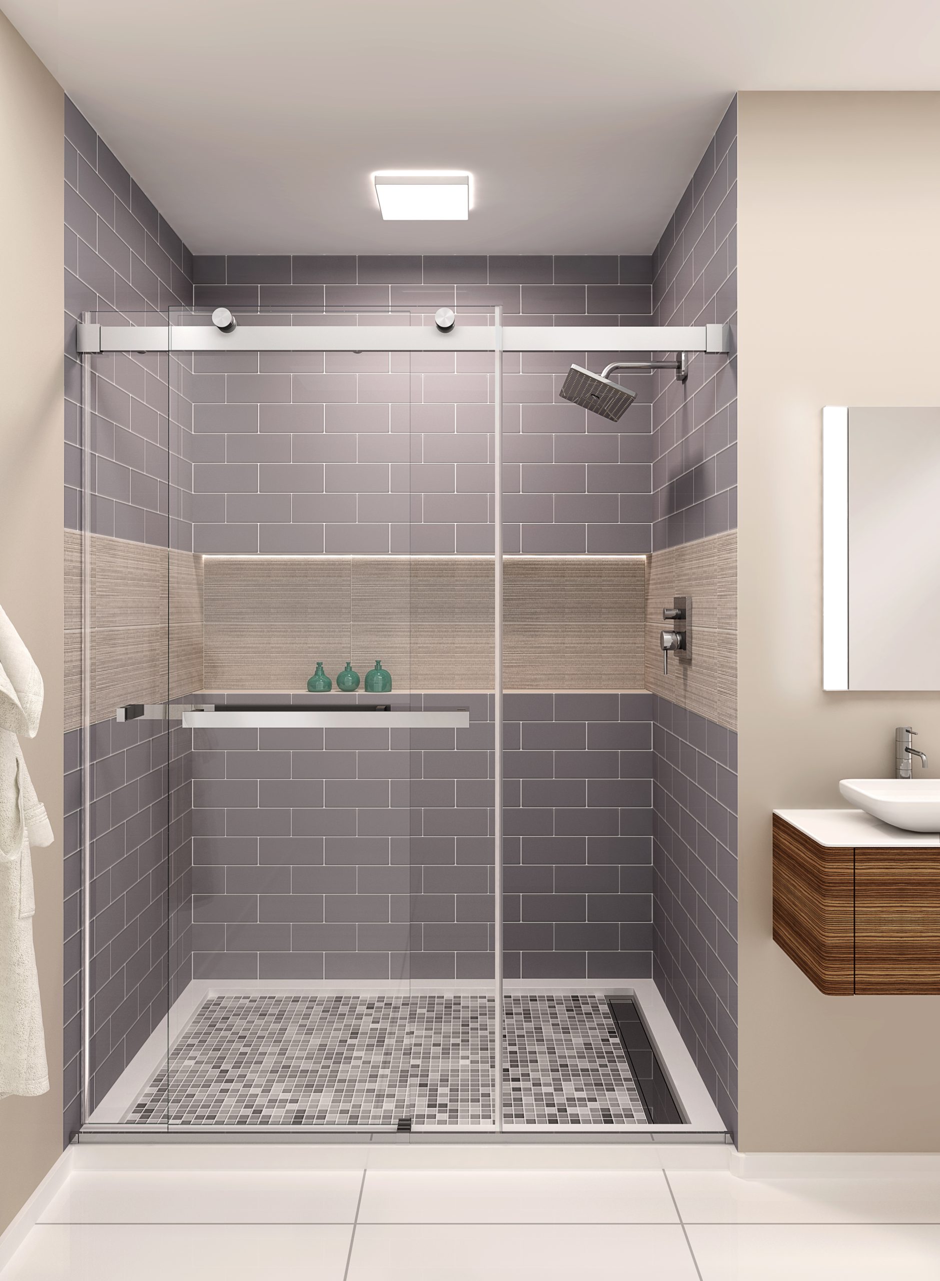 GlassCrafters’ Equalis Series™ shower door system is a new developed product that provides the functionality of a frameless by-pass with a timeless, contemporary and transitional aesthetic.