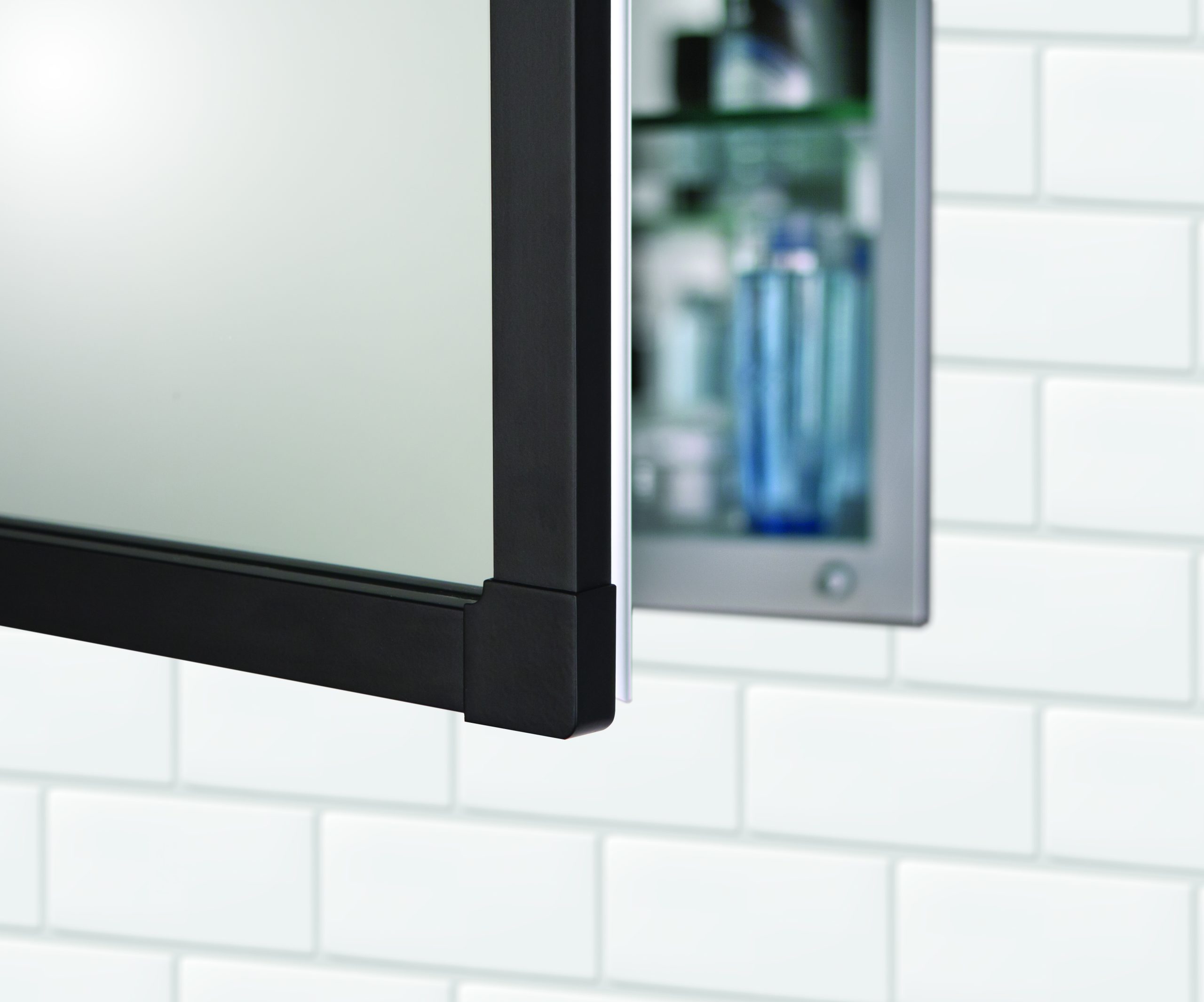 - Framed mirrored door available as flat mirror or 3/4" beveled mirror upgrade