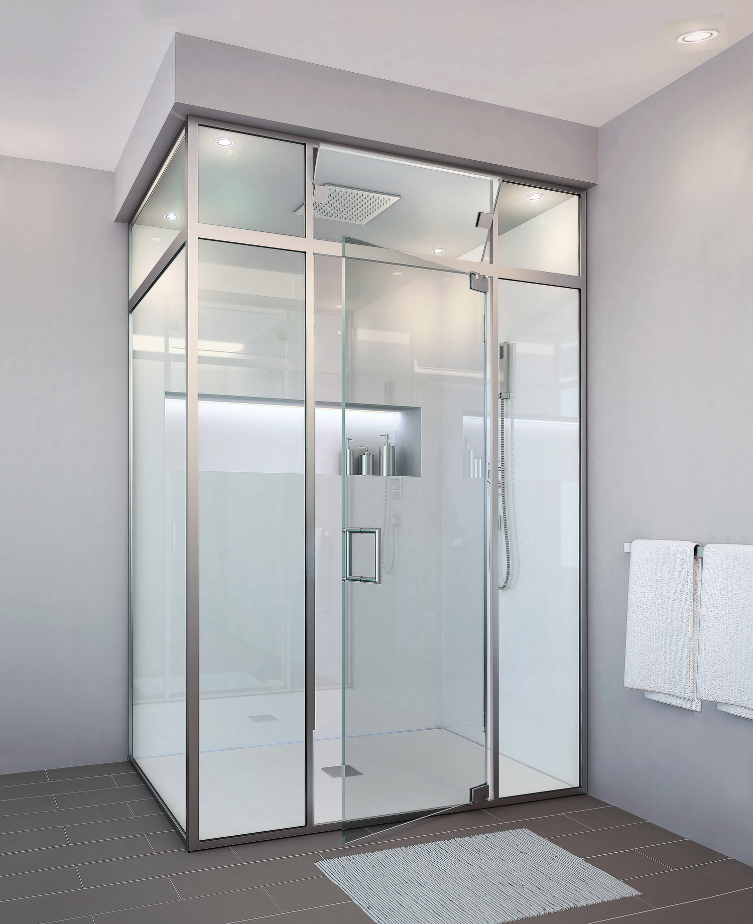 Of course there are some exceptions. There are companies that are designing and manufacturing semi-framed shower enclosures made of plated brass or stainless steel extrusions. But those are rather rare.